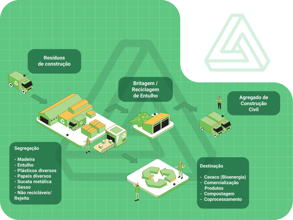 A Classe A é uma empresa especializada na gestão sustentável de resíduos da construção civil, com soluções completas que envolvem triagem, reciclagem e destinação adequada. Sua atuação inclui uma Área de Triagem, Transbordo e Reciclagem de resíduos da construção civil e volumosos — unidade fixa localizada em Contagem (MG) —, além da coleta, logística e destinação de resíduos industriais, perigosos e não perigosos. Todas as operações são alinhadas aos princípios da economia circular e da sustentabilidade regenerativa.